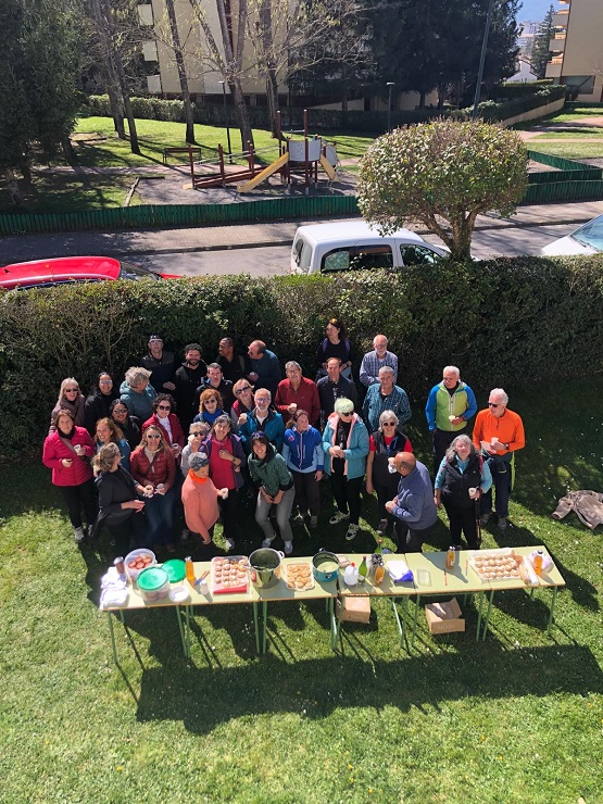 Como cierre del proceso formativo, se ha llevado a cabo un taller con la colaboración de la Cruz Roja en el que las participantes han elaborado un almuerzo sostenible y saludable compuesto por alimentos de proximidad y temporada. Entre los aperitivos que elaboraron los participantes con ayuda profesional se encuentran un arroz ecológico de Bio Palacín con cremoso de chirivía, espinaca y eneldo y queso local de la quesería de Villanúa OXortical; crema de brócoli y hamburguesitas de patata con pasta de aceituna del Bajo Aragón y nabo encurtido. De bebida, zumo de manzana y sidra natural de la empresa Ingrávida y la cervecería Rondadora de Sobrarbe. El almuerzo se compartió con el grupo de caminantes del centro de adultos generando un espacio de convivencia y sensibilización en torno a la alimentación.