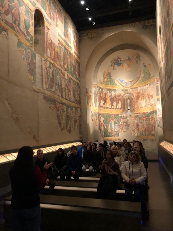 Durante la visita cultural, los 25 asistentes disfrutaron de las explicaciones y de la contemplación de parte del rico patrimonio de nuestra ciudad. Para la mayoría de ellos, era una actividad nueva. Fue una tarde diferente en la que pudieron aproximarse al conocimiento del románico y al hecho de que Jaca es una gran privilegiada por ser primera capital del Reino de Aragón y por tener la primera Catedral románica de la península para algunos autores. En su Museo, pudieron comprender la labor conservadora de la diócesis así como cuestiones tan interesantes relativas a la técnica del strappo, y cómo diferenciar la estética románica de la gótica a partir de la imaginería mariana. También aprendieron la importancia del Capitel del Rey David y los Músicos y lo que representa para la historia de la música.